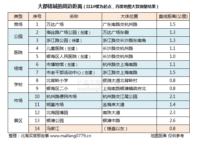 大都锦城位于银滩大道,从它的1#楼出发到银滩公园大门,实际距离3.9公里。如果只论路程,它不是一线海景房甚至二线都有点悬。