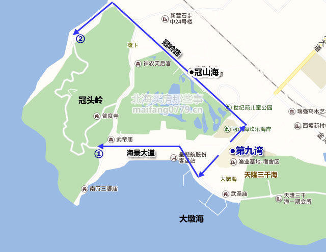 冠头岭一带是北海空气最清新的地方,而且登高望海心旷更神怡。地势平缓老年人可以爬山,距市中心仅6公里后顾无忧——站在越冬避霾的角度,冠头岭是北海的首选。