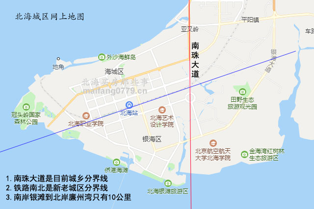 但如果站在购房角度,北海是一个不折不扣的小城市。它三面临海,南岸的银滩到北岸的廉州湾,只有10公里;东面的南珠汽车站到西面的冠头岭,13公里。