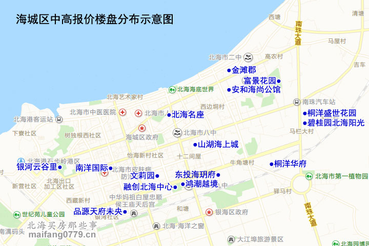 银海区中高报价楼盘分布之密集,望而生畏。但也有好处:看盘方便。