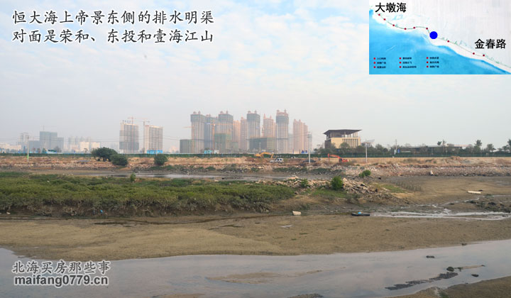 明渠对面是荣和银滩蓝湾。按约定,它需要沿着明渠建一条商业街。