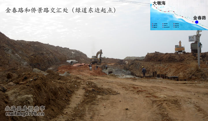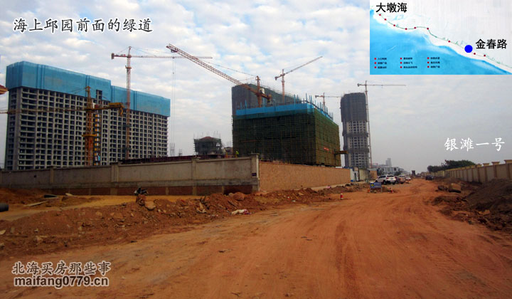 上图里面绿色的变电箱那儿就是通往金海岸大道的规划小路。