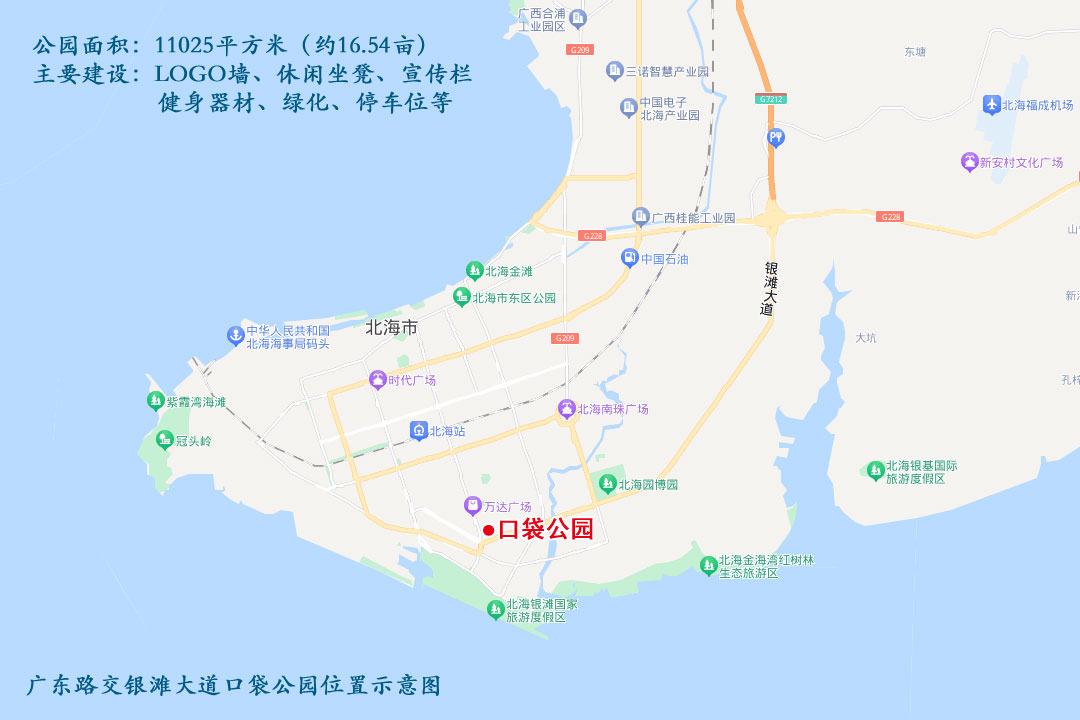 今年7月25日,北海市市政管理局在北海日报刊发了一篇报道《练就市政“绣花”功夫 打造优美宜居城市》。里面说,“牵头推进国家园林城市复查工作,开展‘口袋公园’项目建设,第一批5个‘口袋公园’计划于下半年开工,第二批64个‘口袋公园’正在报批”。
