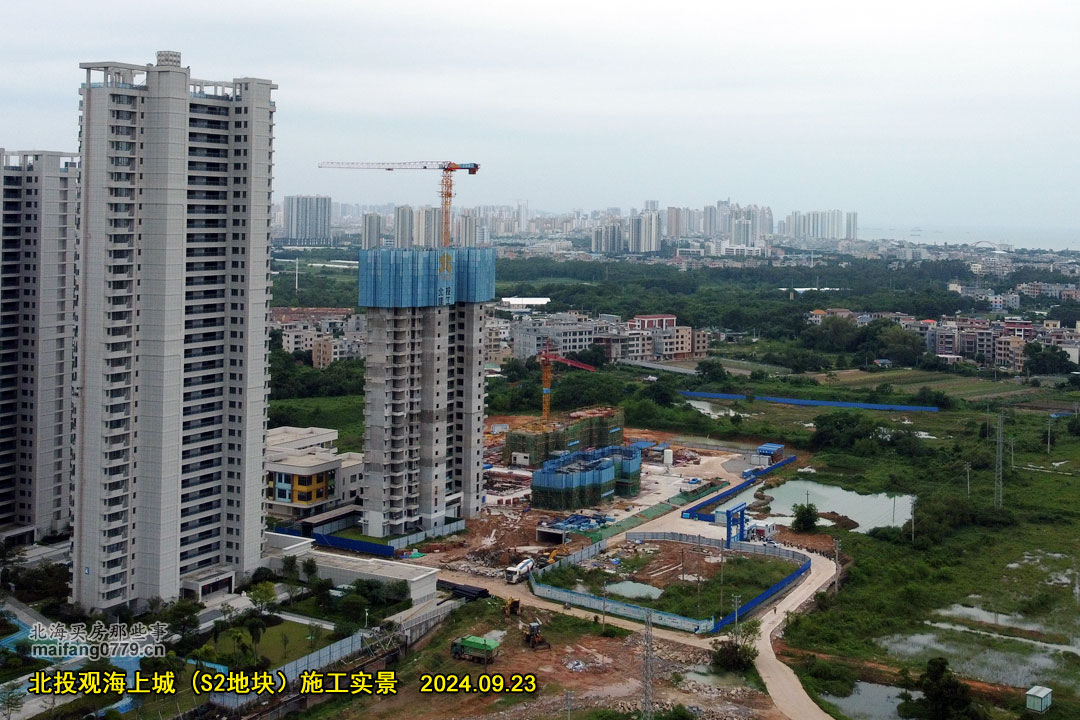 这是北投观海上城(S2地块12-14#楼)的施工实景。项目位于北海大道东延线交向海大道西南角,海城区向海实验小学北侧。