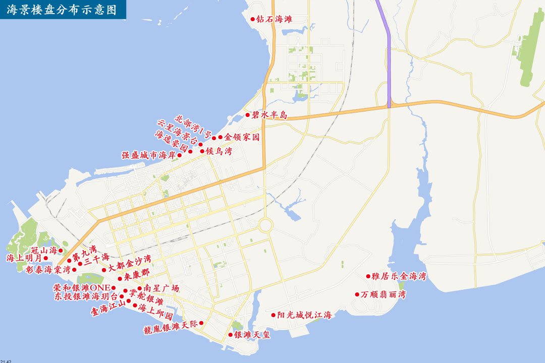 4、海城区(铁路以北)的楼盘有20个,虽然配套完善但普遍规模偏小。