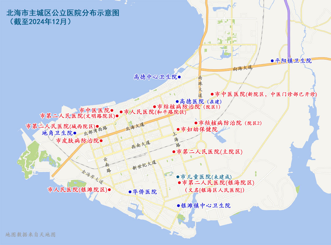 上图医院数据仅限于主城区范围,不含铁山港区、银海区福城镇、海城区涠洲镇。