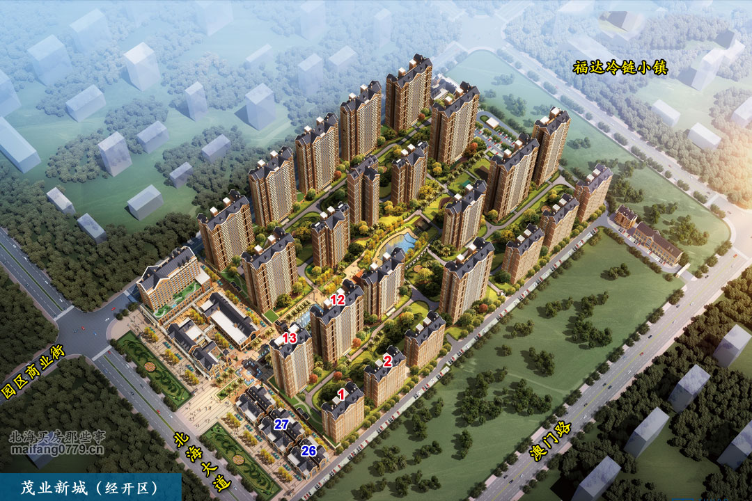 茂业新城,位于经开区北海大道东侧、澳门路以东。小区西边有园区商业街,东边有福达冷链小镇。