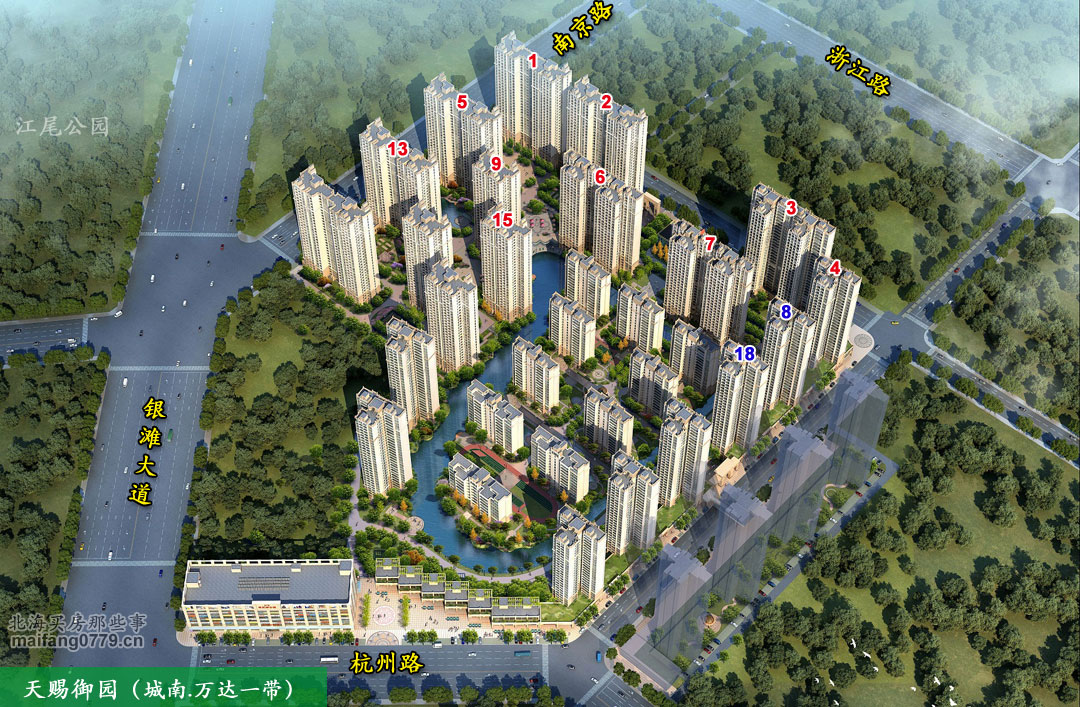 天赐御园,位于万达广场以西、银滩大道(江尾公园)与杭州路交汇处东北方向。