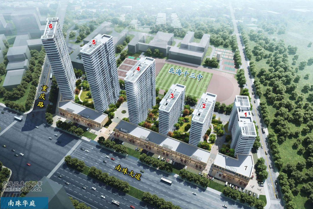 南珠华庭,位于南珠大道与重庆路交汇处东南角。小区东侧是北海十三中。