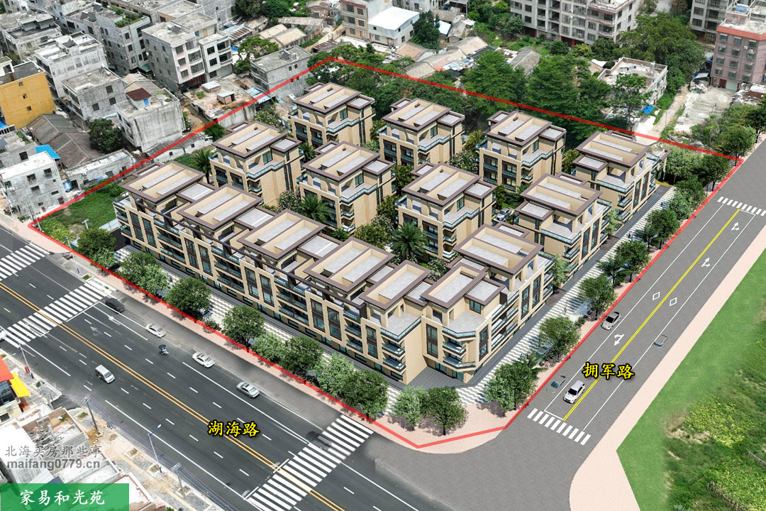 家易和光苑,位于湖海路与拥军路交汇处西北角,东边不远是海城区实验一小。
