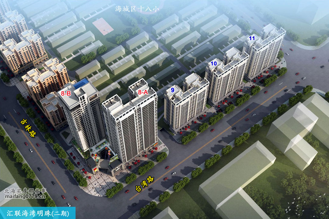 汇联海湾明珠,位于经开区吉林路与台湾路交汇处西北角。小区北边是园区综合市场,西南角是海城区十八小。