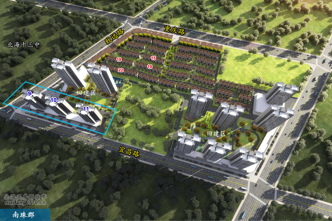 南珠郡(曾名“西南大道回建区”),位于南珠大道十三中东边、重庆路与宜昌路之间。