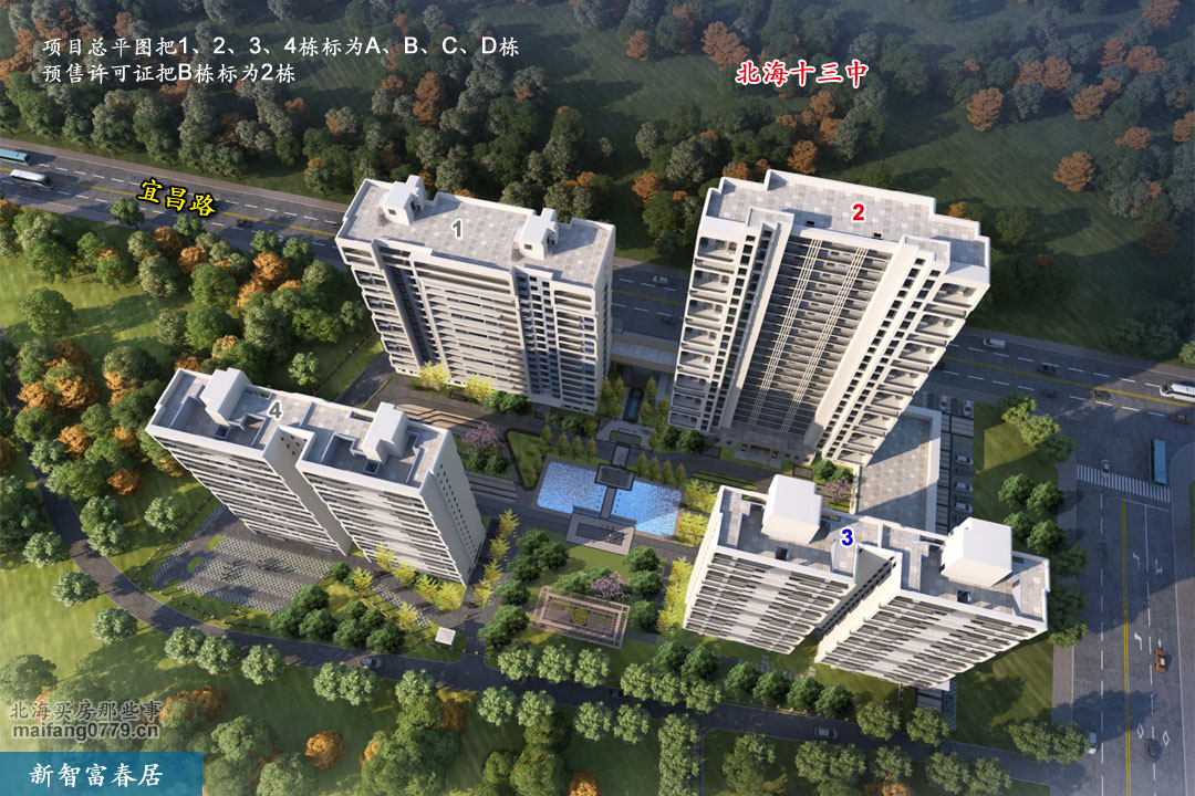新智富春居,位于南珠大道以东、宜昌路南侧。小区北面是北海十三中。