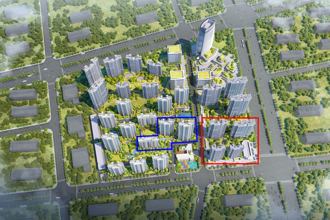 北海现在也不缺大盘。例如上图这个楼盘将近300亩,但目前只建成交付红框里面的4栋楼,还有慢悠悠在建蓝框里的3栋楼——这儿的业主需要等待多少年才能完全享受这个楼盘里面的小区环境?